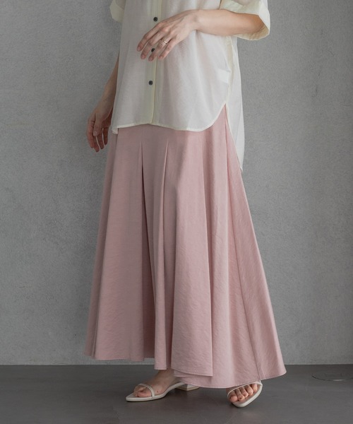 ーーー ふんわりとしたシルエットで程よい甘さと光沢感のある上品な素材を両立させたフレアスカート オンオフ問わずに活躍する、着回し万能な一枚 ーーー 【デザインと特徴】 歩くたびに美しく揺れるように贅沢に素材を使用したフレアシルエットのスカート。 タックを施し、ふんわりしたシルエットにこだわりつつも 途中まで中縫い仕様にすることで腰回りがスッキリ見えするように工夫しました。 後ろのみゴム仕様にすることで、ラクな履き心地を実現しております。 【素材特徴】 程よい光沢感のサテンと落ち感のあるレーヨン混素材を使用。 シワになりにくく扱いやすい素材を採用しました。 【スタイリング】 ブラウスやカーディガンで可愛らしいスタイリングに。 Tシャツやスウェット合わせでカジュアルをミックスさせたスタイリングにも◎ 【洗濯可否】 手洗い洗濯可能です。 ーーーーーーーーーーーーーーーーーーーーーーーーーーーーーーーーー 《インフォメーション》 ◆商品のお気に入り登録 ♡をクリックで気になるアイテムをお気に入り登録していただくと、 以下の通知を受け取ることができます。 ・入荷 ・再入荷 ・ラスト一点 ・セール対象時 ◆ブランドのお気に入り登録 新商品や再入荷、セール、クーポン配布などのお得な情報を受け取ることができますので、是非ご登録ください♪ 公式Instagram >>> 【@apartbylowrys 】 おすすめアイテムや新作情報、" ショップニュース "を更新中! ぜひフォローしてみてくださいね^^