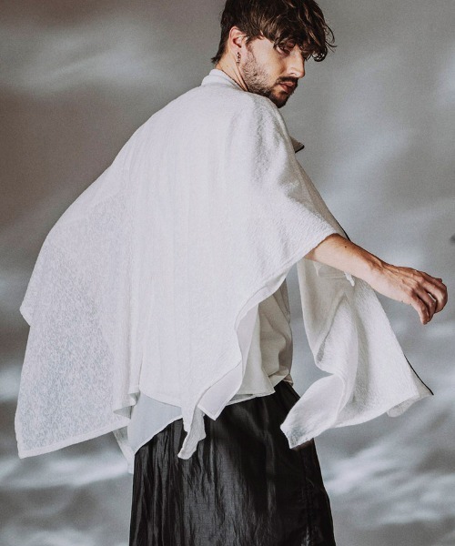 ドローストリングスハイカラーポンチョ 継続人気のポンチョシリーズ 今作は本格的なサマーシーズンにも着用可能なシアー感のある生地を採用 フロントファスナーは柔軟性の高いコイルファスナーする事で生地との馴染みを保たせている ドローストリングスによるアレンジでスタイリングのアレンジも広がるアイテム フロントファスナー ドローストリングス バックスリット WHITE.GRAY.BLACK model H:182cm/size one (Overseas model) WHITE.GRAY model H: 180cm /size one (Japanese model) BLACK model H: 170cm /size one (Japanese model)