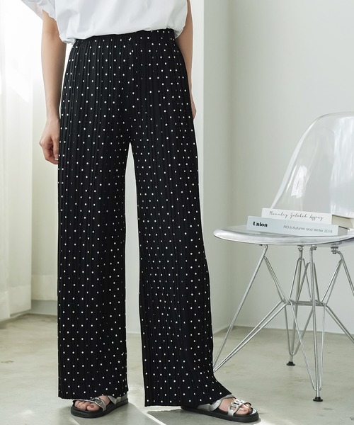 ★ドットセルフカットプリーツパンツ★ ★素材★ 布地の表面に深めに凹凸を付けたプリーツ加工のパンツ なので、横伸びして穿き心地抜群です。ストレッチ素材 を使用しているのでさらにエアリーな触感になったワイ ドパンツです。 ★Detail★ <セルフカットパンツ> 裾はセルフカット仕様になっており、お好みの長さにカ ットして調整可能です。身長やシューズに合わせて、自 分にぴったりの丈感で着用できます。 <ウェストゴム> ウエストは締め付け感の少ない総ゴム仕様で、ストレス フリーな穿き心地を実現。程よくフィットしながらも窮 屈感がなく、長時間の着用でも快適にお過ごしいただけ ます。 ★ポイント★ 細やかなドット柄が目を惹く、軽やかなプリーツパンツ が登場です。縦ラインを強調するプリーツデザインが、 脚をすっきりと長く見せてくれる一本です。身長やコー ディネートに合わせて自分にぴったりの丈感で着用でき るセルフカットパンツです。 透け感:ホワイト×ブラック若干あり 伸縮性:あり 裏地:なし ☆気になるアイテムは【お気に入り登録】がおすすめ☆ ▽商品のお気に入り登録 完売カラーの再入荷やラスト1点の通知などを受け取る ことができます。 ▽mili an deniをお気に入り登録 新商品やクーポン、セール情報をいち早く受け取ること ができます。 ※モニター・環境等により実際の商品と多少色味が異な って表示される場合がございます。予めご了承ください ますようお願い致します。