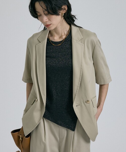 *Detail*落ち感のあるデニム見え素材で仕立てた、軽やかなハーフスリーブジャケット。 再生繊維(テンセル)をベースにした柔らかな風合いで、きれいめにもカジュアルにも着回しやすい一着です。 サイズは38がゆったりとしたオーバーシルエット、36は38より2ピッチコンパクトなサイズ感でお好みに合わせて選べます。 *Coordinate* 同素材のセットアップパンツ(32520050009)と合わせれば、きれいめ感のある大人のデニムスタイルに。 Tシャツやタンクトップの上にさらっと羽織るだけで、こなれたカジュアルコーデが完成します。 足元はサンダルやパンプスで抜け感を加え、軽やかなバランスに仕上げるのがおすすめです。 【商品のお気に入り登録】 完売カラーの再入荷通知や、ラスト1点の通知、プライスダウンしたセール通知も受け取ることができます。 【ブランドのお気に入り登録】 新作や再入荷等、いち早くブランドのお得な情報を受け取ることができます。