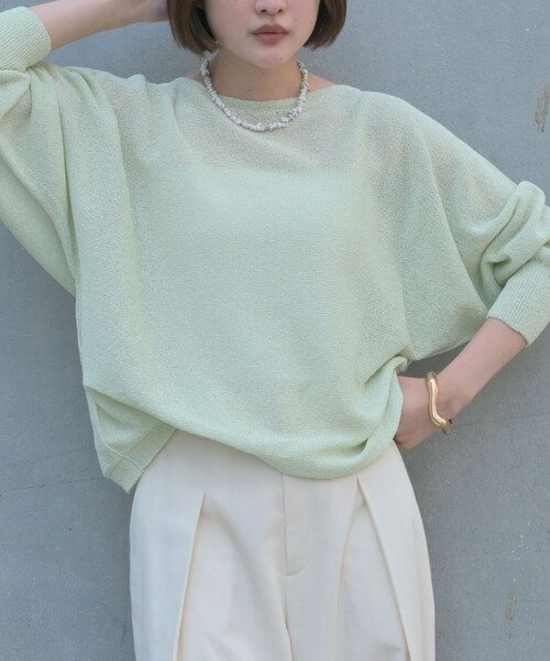 *Detail*和紙の糸を使用した、軽やかなシアーニットプルオーバー。 今シーズンは首元をボートネックにアップデートし、より抜け感のあるデザインに仕上げました。 新色も加わり、涼しげな素材感とともに春夏のスタイリングを軽やかに彩ります。 *Good Point* 〇手洗い可能手洗いが可能なので、お手入れが簡単です。 〇毛玉になりにくい和紙素材が衣類同士の擦れによる毛玉を防ぎます。 〇吸水速乾汗をかいてもすぐ乾き、清涼感を保ちます。 ※前下がり:7cm/後ろ下がり:4cm *Coordinate* ゆったりとしたシルエットで、ワイドパンツやスラックスと合わせるだけで大人のリラックススタイルに。 タンクトップをインしたレイヤードで、シアー感を活かした着こなしもおすすめです。 きれいめボトムからデニムまで合わせやすく、オンオフ問わず活躍します。 ※商品画像は、光の当たり具合やパソコンなどの閲覧環境により、実際の色味と異なって見える場合がございます。あらかじめご了承ください。 【商品のお気に入り登録】 完売カラーの再入荷通知や、ラスト1点の通知、プライスダウンしたセール通知も受け取ることができます。 【ブランドのお気に入り登録】 新作や再入荷等、いち早くブランドのお得な情報を受け取ることができます。