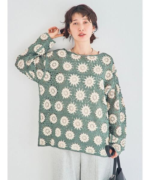 立体感のあるモチーフ編みが印象的なニットプルオーバー。 透かし編みの軽やかな表情がコーデに奥行きを生み、存在感のあるスタイルに仕上げます。 インナーの色合わせで雰囲気を変えたり、デニムやロングスカートに合わせてバランスを楽しんだりと、レイヤードを楽しめる一枚です。 ※商品画像は、撮影環境やお客様のご利用のPC・スマートフォンのモニター環境などにより実物と色味に差異がある場合がございます。