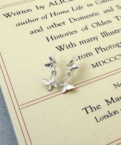 3coins(3coins)の「ダブルバタフライ樹脂イヤリング(イヤリング・レディース・アイボリー/パープル・FREE)」の1枚目の写真