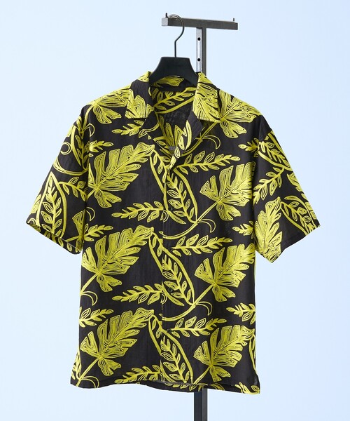 大胆な刺繍が映えるオープンカラーシャツ Embroidery S/S Shirt 【素材】 イエロー:エキゾチックなリーフモチーフを、イエローのコットンヤーンによるチェーンステッチで繊細に表現。天然素材のナチュラルな風合いとクラフト感のある立体的な表情が特徴です。 ブラック:軽さとドレープ性が特徴のポリエステルシフォンをベースに、異なる混率のブラックヤーンを使用し、繊細な総刺繍で表現したオリジナルテキスタイルです。 【デザイン】 素材のインパクトと軽量感を活かした、シンプルなオープンカラーシャツ。メタルボタンをアクセントに、ブランドらしい存在感のある羽織りシャツに仕上げています。 【コーディネート】 Tシャツやタンクトップの上に軽く羽織るスタイルがおすすめ。デニムやスラックスと合わせたシンプルなコーディネートでも、刺繍の存在感がスタイリングのアクセントになります。