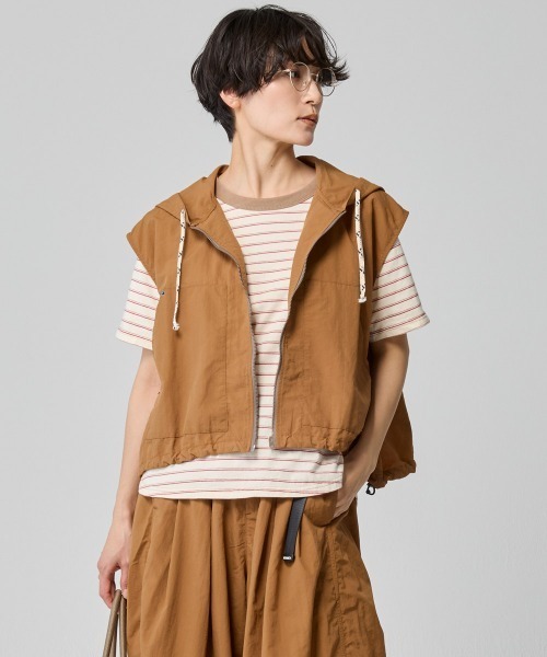 撥水 ドロスト フードベスト / ミリタリーベスト / ナイロンベスト / 体型カバー / ライトアウター / セットアップ対応