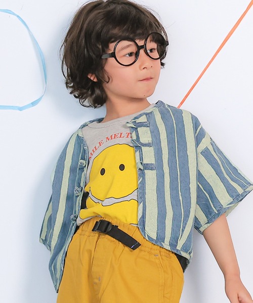 さっと羽織るだけでこなれる デニム素材のチャイナシャツ ■デザイン チャイナボタンが目をひく、存在感たっぷりの半袖シャツです。 配色のストライプ柄がコーデのアクセントになり、いつもの着こなしをぐっと新鮮に見せてくれます。 ゆったりめのシルエットと短めの丈感で、重たく見えずバランスよく着られる1枚です。 ■スタイリング Tシャツやタンクトップの上にさっと羽織るだけで、いつものコーデがぐっとおしゃれにまとまります。 サロペットやデニム、ワイドパンツと合わせたラフな着こなしがおすすめです。 前を開けて軽く羽織っても、ボタンを留めてトップス風に着てもかわいく決まります。 ■関連商品(同シリーズ) チャイナシャツ/0010561002 6分丈パンツ/0010061004 サロペット/0010261001 イージーパンツ/0010061001 ■関連商品 Kids/0010561002 Otona/0010561003 ■生地感 やわらかなデニム素材を使用しています。 ほどよく軽さがあり、ごわつきにくいのでさらっと着やすい生地感です。 ++++++++++++++++++++++++ 透け感:なし 伸縮:なし 厚み:普通 ++++++++++++++++++++++++ ※ネームタグ付き ■色柄について プリントデザインの並び位置などが、商品1点ずつ異なります。 お選びいただくことはできませんので、予めご了承くださいますようお願い致します。 ※モデルが着用している画像は、照明や日光などの撮影時の環境により実物と異なる色味になる場合がございます。 商品単体の平置き画像を実物に近いお色味になるよう努めておりますので、お色味のご確認は平置き画像をご参照くださいませ。 ※お使いのモニター環境によっても実物のお色味と異なって見える場合がございます。予めご理解の程よろしくお願いいたします。 ハートマークをポチッ! 気になる商品はお気に入り登録をお忘れなく! 商品のお気に入り登録をすると... [再入荷][残り1点][セール情報]を受け取れます。 MARKEY'Sをお気に入り登録すると... [新商品][再入荷]の情報をいち早く受け取れます。