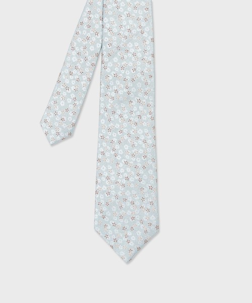 緻密な織りのテクスチャーと繊細なフローラルモチーフを掛け合わせた、モダンなニュアンスのネクタイ。 細やかな凹凸を持つベース生地と、異なる織り組織で立体的に表現された小花柄のコントラストが、胸元に豊かな陰影を生み出します。 落ち着いたトーンの織り柄のなかに、多色使いの可憐な花々がさりげない個性を光らせるこだわりのディテール。 誠実な印象が求められるビジネスのスーツスタイルから、少し華やぎを添えたいキレイめなジャケットスタイルまで、幅広い装いに難なく調和します。 日々のコーディネイトに上品な遊び心をプラスし、大人のVゾーンをエレガントに彩るタイムレスな1本です。 ________________________ [お買い物をお楽しみ頂くために] □商品のお気に入り登録 完売カラーの再入荷通知やラスト1点の通知など、商品情報をお届けします。 □ショップ・ブランドのお気に入り登録 新商品や再入荷など、いち早くブランドの最新情報をお届けします。 ________________________