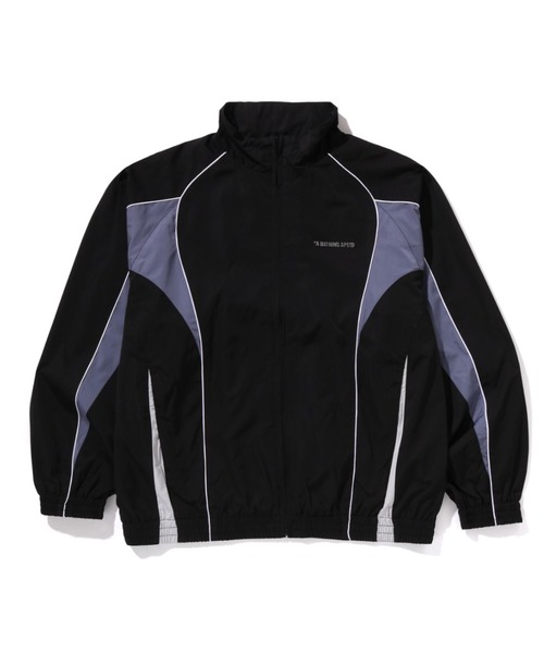 合わせるアイテムで様々なスタイルが楽しめるトラックジャケット。 左胸にA BATHING APEロゴのメタルプレート。