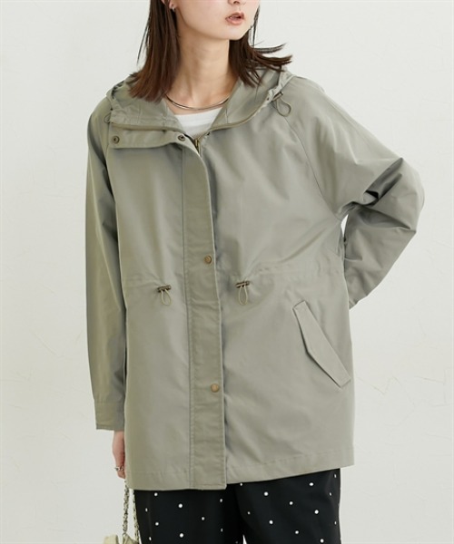 ■デザイン 春・秋の季節の変わり目に便利なモッズコート。カジュアル過ぎないこなれ感がポイントの春アウター。ウエストの紐でやや調整できるのですっきり見せが叶います!背中部分もヨーク切替がありすっきり見せてくれる仕様です。フロントはファスナーとボタンと両方で開閉できて実用的。ポケットやフードもあり使いやすいこだわりの仕様がポイントです! ■素材 ほんのり微光沢のウェザークロス生地を使用。高密度でアウターにぴったりの織物生地です。薄手なのにほどよいハリがあり、軽い生地を使用しています。br> ■おすすめのスタイリング ウエスト部分のコード入りデザインですっきり見せれるので幅広いボトムに合わせてコーデが可能です。 <仕様> ポリエステル100% 前ファスナー・ボタン開き 透け感:なし 伸縮性:なし 生地の厚み:普通 光沢感:ややあり ウエスト:総ゴム入り ポケット:両脇 季節:春・秋 シルエット:ゆったり ※フードは取り外し不可 <洗濯方法> 手洗い ■キーワード PL26SP116、20代、30代、40代、SL19SP109、きれいめカジュアル、きれかじ、アウター、オフィスカジュアル、キレカジ、ジャケット、ファッション、レディース、大人、大人カジュアル、春、通勤カジュアル