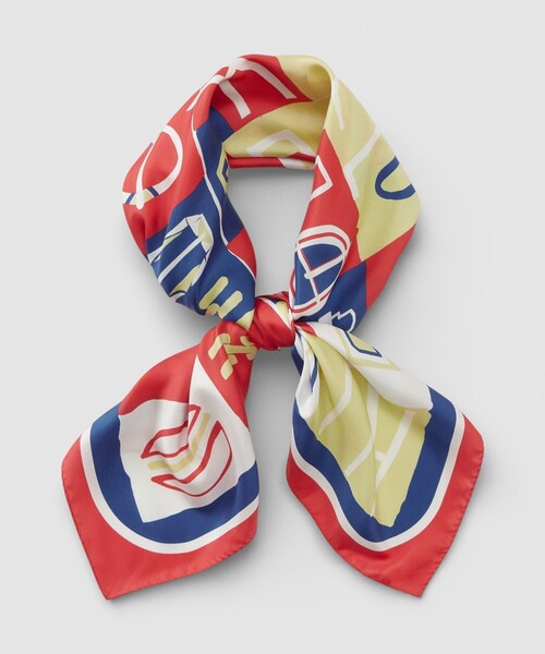 【allureville 2026 Spring & Summer】 ベルトやバックルのモチーフをアルファベットと合わせて手描き風のモチーフにして更にカラーブロックでアレンジした柄で作成したスカーフです。 アクセントの一つとしてコーディネイトをお楽しみください。 ※照明の関係により、実際よりも色味が違って見える場合がございます。 またパソコン・スマートフォンなどの環境により、製品と画像のカラーが異なる場合もございます。 予めご了承ください。