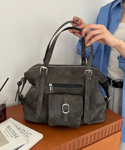 収納力とデザイン性を両立した、こなれ感漂うソフトボストンバッグ ヴィンテージライクな風合いを持つ、マットな質感の合成皮革を使用。シルバーのバックルやジップが、クールで洗練された印象をプラスします。 14cmの広めのマチでたっぷり収納できる大容量サイズです。持ち手の長さはバックルで調整可能なので、手持ちや肩掛けなど、好みのスタイルで使えます♪ 《容量の目安》 ・長財布 ・600mlペットボトル(縦・横どちらでも収納可能) ・手帳 ・ポーチ ・ハンカチタオル ・イヤフォン ・カメラ ・携帯 《ポケット》 内装ポケット:オープンポケット×2、ファスナーポケット×1 外装ポケット:ファスナーポケット×2、フラップポケット×1 【カラー表記について】 システム上の都合により、一部カラー名がサイト表記と異なる場合がございます。 【入荷時期について】 入荷日ごとに販売数量が決まっているため、オンラインでは完売後に次期納期の数量にて予約販売を行っております。 店舗入荷アイテムは、店舗入荷時期と予約商品のお届け時期が異なる場合がございますので、予めご了承ください。 ※追加入荷のある商品もございますので、詳しい店舗入荷時期に関しましてはお近くの店舗へお問い合わせください。 ※店舗の在庫状況に関しましては、こちらのページに記載されている「店舗在庫」から確認にしていただけます。 「在庫あり」の表記でも、お取り置き分などでお客様に販売できない場合がございます。 ※予約商品でも、店舗では追加がない場合もございます。ご了承ください。 ※初回予約商品でも配送処理が発生するため、店舗より遅れてのお届けとなる場合がございます。