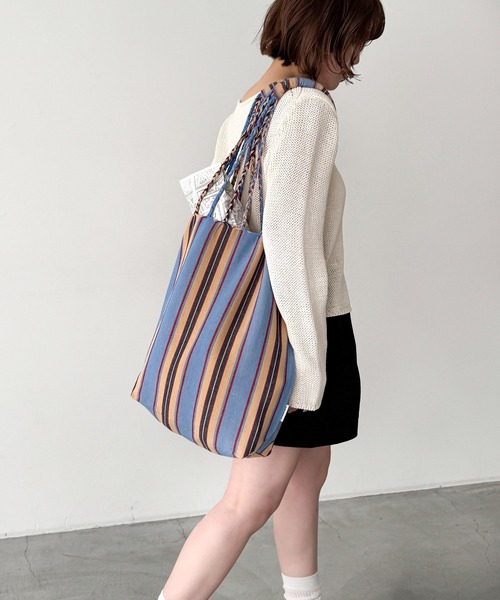 デザイン 荷物を包み込むハンモックトート。 ハンモックのサスペンション部分が持ち手のデザインになったトートバッグです。 マチつきで荷物が安定するので、なんとなく置いても絵になります。 素材 織り方やデザインからトラディショナルな魅力を感じられるバッグです。 コーディネート 春夏~秋冬と季節に合わせやすく、複数所有したくなる豊富なカラー展開。 多色使いで、コーディネートに程よいアクセントを加えます。 ------------------------------------- 【仕上げについて】 製造工程上、つなぎ目に白糸が覗いたり、ほつれや糸飛びが生じる場合がございます。 また、サイズや色味に多少の個体差が生じます。ハンドメイド製品の特性としてご理解ください。 ------------------------------------- 商品に関する注意事項 ■本製品は洗濯できません。お手入れの際は、中性洗剤を含ませた柔らかい布で汚れを拭き取ってください。 ■生地の製造工程上、他の衣類等に色移りすることがあります。白物淡色物との組み合わせはご注意ください。 ■濡れたままでの放置・使用はおやめください。衣服などへの色移りの原因となります。 ■本製品はハンドメイドで生産されており、サイズや織り方に多少の個体差が生じます。また、糸のほつれや糸飛びがみられる場合があります。 ■持ち手の紐と生地が繋がったつくりになっています。強く引っ張ったりすると生地にほつれが生じます。 ■繊細なつくりのため、鋭利な物や尖った物を入れないようご注意ください。 ■糸がほつれた場合は無理に引っ張らず、ハサミで丁寧にカットしてください。 ■直射日光や強い照明などを長時間受けますと褪色することがあります。 ■火気や熱源のそばに置かないでください。 ■ご購入時、インド綿特有のにおいが気になる場合は、ご使用前に風通しの良いところで陰干ししてください。 ※照明の関係により、実際よりも色味が違って見える場合があります。またパソコン・スマートフォンなどの環境により、若干製品と画像のカラーが異なる場合もございます。 ※商品の色味は、商品アップ画像をご参照ください。
