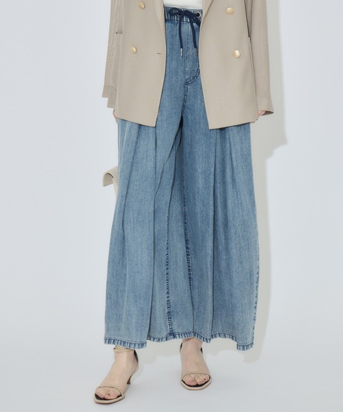 流れるような落ち感と陰影美が際立つワイドパンツ <POINT> インディゴ染めを施したテンセル素材が、豊かな表情と心地よい落ち感を両立。 深みのある発色が、リラックスしたシルエットに凛としたニュアンスを添えます。 【デザイン・シルエット】 フロントで重なる深めのタックが、インディゴの濃淡に美しい陰影を創り出します。 身体のラインを拾わないゆったりとしたワイドシルエットながら、素材のドレープ性により、ルーズになりすぎない絶妙なフォルムを実現。 ウエストゴムとスピンドル仕様で、日常の動きに寄り添う快適な穿き心地に仕上げました。 【素材感】 しっとり滑らかな、肌離れの良さが魅力の質感が特徴です。 インディゴ染めならではの奥行きのある色合いは、使い込むほどに馴染んでいく過程も楽しみの一つ。 適度な落ち感が縦のラインを強調し、ワイドシルエットを品良く落ち着かせます。 【カラー】 ブラック ブルー 2色展開 【スタイリング】 白のカットソーやシャツを合わせた、コントラストの映えるクリーンな着こなしがおすすめ。 タックのデザインが際立つよう、フロントをインすることでスタイルアップも叶います。 裏地:なし 光沢:なし 伸縮性:なし 透け感:なし 生地の厚さ:やや薄手 ポケット:あり 【33℃】 音楽界に影響を与えた作曲家ジョン・ケージの代表曲‘4分33秒’ 「無音も音楽である」と、音楽の可能性を提示したこの曲と同じように、 洋服にもまだ感じていない可能性があると考えています。 第一楽章の33秒=洋服の持つ可能性の始まりを意味する‘33’ 一目見て体温が上昇するようなワクワク感や、<br> 思わず着たくなってしまうようなアイテムを提案していく想いを‘℃’に込めています♪ ※照明の都合上、多少の色ブレが生じてしまう可能性がございますので、予めご了承くださいますようお願い致します。 --------------------------------------------------- ●お気に入り登録でお得情報を手に入れよう! 「商品のお気に入り登録」をすると、再入荷通知や、ラスト1点の通知、セールの通知など、お得情報が届きます。 また、マイページでいつでも確認が可能になります。 「ブランドのお気に入り登録」をすると、新商品や再入荷、などいち早くブランドの最新情報をお届けします。 ぜひ、ご利用ください。 ----------------------------------------------------