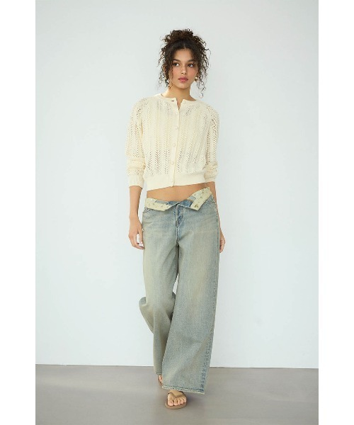 程よい色落ち加工がヴィンテージライクな雰囲気を演出するデニムパンツ。 脚のラインを拾いすぎない、リラックス感のあるストレートシルエットで、デイリーに取り入れやすい一本に仕上げました。 ウエスト内側にはさりげなく小花柄の生地をあしらい、折り返して柄を覗かせたスタイリングも楽しめるデザインに。 トップスをインした時や、ウエストを少し折り返した着こなしのアクセントとしても活躍します。 シンプルながら細部までこだわったディテールで、シーズンレスに活躍するデニムです。 ※モデル着用画像のポケットサイドのブランドネームタグはついておりません。 ※モデル着用画像はイメージのため、実際の商品のお色と異なって見える場合がございます。商品の詳細画像が実際の商品により近いお色となります。 ※製品タグに注意事項の記載がございますので、お読みいただき、正しくお取り扱いください。