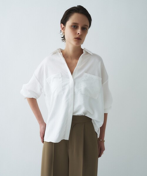 毎年ご好評いただいているサテンシャツが、新色を加えて今年も登場。 【デザイン】 ・程よいゆとりを持たせた、女性らしく着こなせるリラクシーなシルエットのサテンシャツです。 ・シャープな襟元が顔周りをすっきり見せ、きちんと感のある洗練された印象に。 ・ヒップまですっぽり隠れる着丈で、自然な体型カバーも叶います。 ・前後差のある裾デザインで、ボトムを選ばずバランスよく決まります。 ・一枚でも様になり、オンオフ問わず着回しやすいデザインです。 【素材】 ・サテン特有の繊細な微光沢が上品な印象を与える素材。 ・しなやかな落ち感があり、シワになりにくく扱いやすいサテン生地です。 【着こなしポイント】 ・シャツデザインできちんと感があり、通勤やオフィススタイルにもおすすめです。 ・一枚着としてはもちろん、ニットやジャケットとのレイヤードスタイルにも活躍します。 モデル身長:176cm ーーーーーーーーーーーーーーーーーー 気になるアイテムはお気に入り登録がおすすめ! お気に入り登録で、再入荷通知やお値下げ情報をお知らせ。 お得な情報をいち早くお届けいたします! アイテムページにある、ハートマークをクリックして追加できます。 ーーーーーーーーーーーーーーーーーー ※照明の関係により、実際よりも色味が違って見える場合があります。また、パソコン・スマートフォンなどの環境により、若干製品と画像のカラーが異なる場合もございます。 店舗へのお問い合わせ商品番号:R91-85029 ●製品寸法: 01(S):着丈71cm B121cm 袖丈47cm 肩幅59cm 02(M):着丈72cm B124cm 袖丈48cm 肩幅60cm 備考: