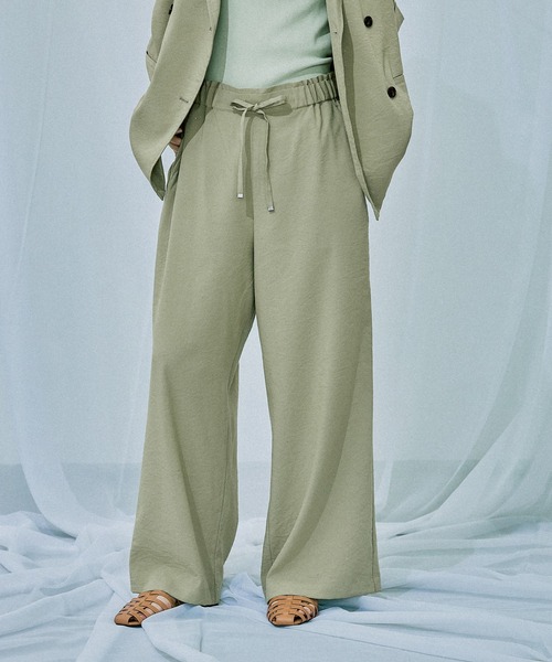 ワイドストトレートシルエットのイージーパンツ。 ストレートのシルエットが綺麗できれい目にもカジュアルにも着こなしができる1本です。 ウエスト部分にゴムを使用し、外紐で調整しやすいのもポイント。 【素材】 レーヨン混のさらっとした肌触り素材。 多機能付素材で気温の上がる時期にも着やすく、リネンのような素材感が特徴。 [マシンウォッシャブル] ご家庭の洗濯機でお洗いいただけます [クイックドライ] 乾きが速い素材を使用しています [イージーケア] シワが発生しにくい素材を使用しています [UVケア] 生地を透過する紫外線を遮蔽する機能があります [クールフィーリング] 肌に触れた瞬間にひんやりとした感覚を得られ、爽やかに着用いただけます 【スタイリング】 カットソーでもブラウスでも合わせるアイテム選ばずスタイリングできる1枚です。 同素材のジャケットやベストとのセットアップスタイルもおすすめ。 ▼同素材のシリーズはこちら ・リネンライクシアーWジャケット ブランド品番:657239 ZOZO商品コード:105744633 ・リネンライクティアードキャミ ブランド品番:657242 ZOZO商品コード:105744604