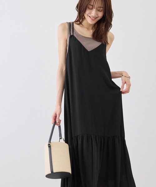 【素材感】 ・暑い時期でも肌離れが良く、さらりと軽やかな質感のポリエステル素材を採用し、ストレスフリーな着心地。 ・たっぷりとしたギャザーを施しながらも、広がりすぎずストンと落ちる絶妙な落ち感が大人の上品さを演出。 ・シワになりにくい素材を使用しているため、移動の多い日や旅行シーンでも美しさをキープ。 【デザイン・シルエット】 ・顔まわりをすっきりと見せるVネックラインが、デコルテに抜け感を与え、キャミソールの子供っぽさを払拭。 ・裾の切り替えに緩やかなカーブを付けることで、歩くたびに空気を含んだような立体的な動きを実現。 ・後ろ身頃のゴム仕様と、結び目で簡単に長さ調節ができる肩紐により、体型を選ばずリラックスして着用可能。 【カラー】 ・どんなシーンにも馴染む無地のブラックは、シックで洗練された印象を与え、小物使いで雰囲気を変えて楽しめる。 ・ブラックベースにオフの花柄を散りばめたカラーは、甘さを抑えたレトロな雰囲気が大人可愛いを叶える。 ・トレンド感溢れるブラウンに花柄を乗せたカラーは、柔らかく女性らしいニュアンスを引き出し旬な着こなしに。 【スタイリングポイント】 ・ボートネックのインナーやジャケットを羽織れば、程よくきちんと感が漂うきれいめなアーバンスタイルに。 ・ロゴTシャツやミリタリーブルゾンを合わせたミックススタイルなら、こなれ感のある大人カジュアルな印象。 ・着丈を短めに調節してデニムパンツをレイヤードすれば、今季らしい奥行きのあるカジュアルスタイルが完成。 ----------------------------- 裏地:あり 光沢感:ややあり 透け感:裏地が付いていない部分はあり 伸縮性:なし ファスナー:なし ポケット:なし ボタン:なし 生地の厚さ:やや薄手 肩紐:調整可 その他仕様:後ろ一部ゴム 季節:通年 ----------------------------- ※撮影時の光、お使いのモニター環境によって色の見え方が違う場合がございます。 ※2025年秋冬商品より、ワンサイズ展開の商品は「F(フリーサイズ)」表記に変更しております。 詳しい採寸はサイズ欄をご覧ください。 【モデル着用サイズ】 ロングヘアーモデル身長:165cm 着用サイズ:F ショートカットモデル身長:168cm 着用サイズ:F 【2026 Spring/Summer】【26SS】
