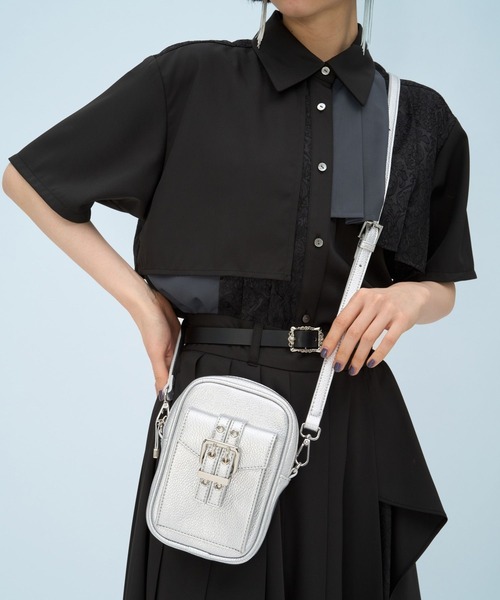 ーーー ベルトデザインがポイントの モードなミニショルダーバッグ ーーー point □スマホやリップなどが入るサイズ感で、ちょっとしたお出かけにぴったり □背面ポケット付きで、コンパクトなサイズながらも収納力抜群◎ □ショルダーの紐は取り外し可能な為、ポーチとしても使用可能 □ブラックとシルバーの二色展開で様々なシーンで活躍するアイテム ・ブラック09は普段使いやすくモードな印象、シルバー10はコーディネートのワンポイントに styling ミニサイズなのでサブバッグとして持ち歩いてもコーディネートのポイントに〇 シンプルなコーディネートに取り入れるだけでモードさをだせるので、夏のシンプルコーデにもってこいです。 ※加工を施した画像を使用しております。 実物と色味が異なる可能性があるため、色味は詳細後ろにある生地寄り画像を参考にお願いいたします。 あらかじめご了承下さい。