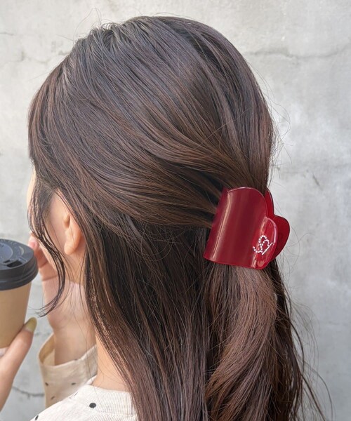 ストーンロゴがポイントのクリップ・小さめで使いやすいサイズ感・どんなスタイリングにも合いやすいデザイン・高見えのヘアアクセサリー