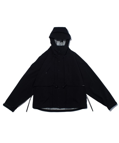 最先端の3レイヤー構造を採用したPERTEXR SHIELDを用いた、防水・防風・透湿性に優れたテクニカルジャケット。F/CE.らしいボックス型のシルエットにドロップショルダーを合わせ、都市生活からアウトドアフィールドまで対応するユーティリティ設計。 PERTEXR SHIELDは、軽量かつ柔軟な表地に、ミクロ単位の無数の孔を持つナノファイバーメンブレンを組み合わせることで、優れた防水性と通気性を同時に実現。さらにDWR(耐久撥水)加工により、表面に水を弾く性能も持ち合わせています。 全体はオールシームテープ仕様で雨風の侵入をブロック。フードや裾のドローコード調整、ベンチレーション、内蔵ショルダーストラップなど、アクティブなシーンでの着用を想定したスペックが満載です。 特徴 ・耐水圧10,000mm/透湿性20,000g/m2/24h ・ナノファイバー多孔膜を用いた高通気・高防水メンブレン ・DWR(耐久撥水)加工による表面の撥水性 ・オールシームテープ加工による防水構造 ・ベンチレーション開口で熱気を放出 ・調整可能なフード・裾・袖構造 ・内蔵ショルダーストラップでバッグのように携行可能 ・防水ファスナー使用