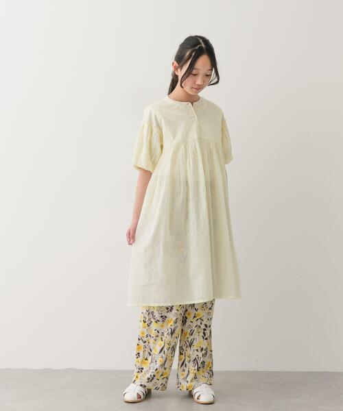 【おでかけにぴったりなコットンボイルワンピース】 ふんわりと軽やかなインド産のコットンボイル素材を使用した夏にぴったりのワンピース。空気を含んだような柔らかい風合いで、汗ばむ季節もさらっと快適に着られます。胸下の切り替えからたっぷり入れたギャザーが、動くたびに揺れる優しいシルエットを演出。程よくボリュームを持たせたパフスリーブは、甘くなりすぎず上品な印象に仕上げました。前開きなのでお着替えしやすいのも嬉しいポイント。1枚でさらっと着るのはもちえろん、レギンスやイージーパンツを合わせたレイヤードスタイルもおすすめです。ナチュラルで涼しげなカラー展開は、普段使いからちょっとしたお出かけまで幅広く活躍。ウィメンズ商材と素材リンクで着用でき、子供らしさときちんと感を両立した夏のワードローブに加えたい一着です。 【ポイント】 ・素材リンクで着用可能 ・キッズサイズの展開あり 《WOMENS展開あり》 DR26230-2030607 コットンボイルギャザーブラウス 《キッズサイズ》 DR26230-3060413 『親子リンク』コットンボイルパフスリーブワンピース(KIDS) 【2026 Spring/Summer】【26SS】 ※この商品は、素材の特性上、多少の色差、織りムラ、フシなどがあります。インド製品独特の風合いをお楽しみください。 ※強い力がかかると、破れる場合があります。着用時は、他のものとの引っ掛けにご注意ください。 ※その他お取り扱いに関しましては、商品に付属のアテンションタグをご覧ください。 総重量 : 約180g [サイズ] 150=145~155cm ※サイズは目安です。採寸表をご参照ください。 ※商品画像は、光の当たり具合やパソコンなどの閲覧環境により、実際の色味と異なって見える場合がございます。予めご了承ください。 ※商品の色味の目安は、商品単体の画像をご参照ください。 ▼お気に入り登録のおすすめ▼ お気に入り登録された商品は、マイページにて現在の価格情報や在庫状況の確認が可能です。 お買い物リストの管理にぜひご利用ください。 素材感 透け感 : ややあり 伸縮性 : なし 裏地 : なし 光沢 : なし ポケット : あり 150(145-155)