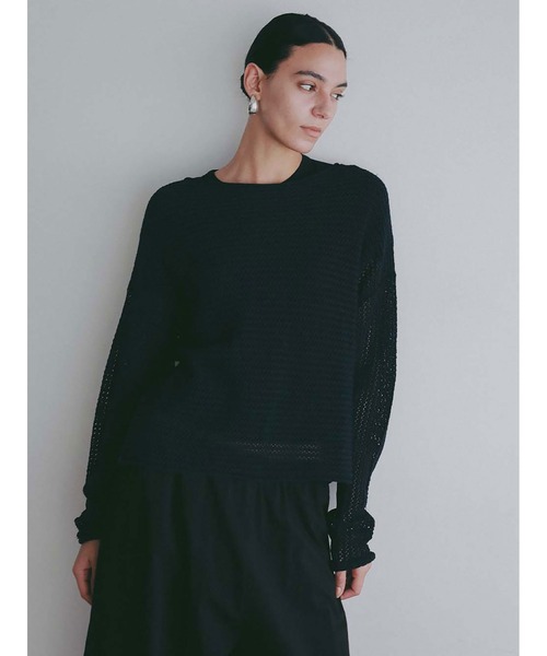 コットンのナチュラルな糸をメッシュ地に編み上げたプルオーバー。 ボーダー調のメッシュ柄が涼し気な印象です。インナーによって印象が変わるので様々な レイヤードスタイルを楽しんでいただけます。 全体的にゆったりとしたシルエットになっており、どんなボトムとも合わせやすいアイテム です。 ※画像の商品はサンプルです。実際の商品と色味、仕様、加工、サイズ、素材等が若干異なる場合がございます。 ※アイテムサイズは商品サンプルを採寸しているため、実際の商品と多少の誤差が生じる場合がございます。 ※末永く愛用頂く為に、アテンションタグ・洗濯ネームを必ずご確認の上、着用又はお取り扱い下さい。 ※HER.のネームタグは直接肌に触れる部分のため、お客様自身で取り外しがしやすいように軽い縫い付けの仕様となっております。 取れやすくなっておりますが、不良ではございませんので予めご了承頂けますようお願い致します。