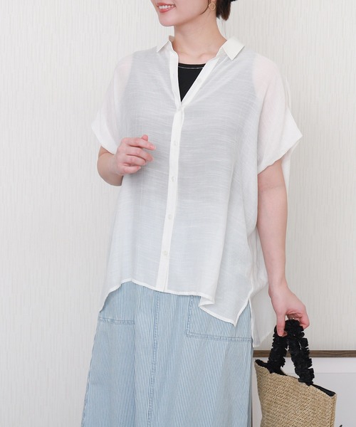 涼しげな素材感と抜け感のあるシルエット。 柔らかなカラーが顔まわりを明るく見せてくれる、ドルマンシアー半袖ブラウス。 インナーに悩まずコーディネートが完成するセットデザインです。 ■point 体が泳ぐようなゆったりとしたビッグシルエットで抜け感プラス。 着るだで旬の大人カジュアルコーデに。 ・シアーシャツとタンクトップがセットアイテム ・ナチュラルな表面感のスラブ素材 ・タンクの首元ビーズがさりげない輝きをプラス。 ・体型カバーも叶うゆったりドルマンシルエット ・セットでも単品でも着回しできる万能アイテム ■detail 軽やかなで涼し気なスラブ素材を使用した、ドルマンシアー半袖ブラウス。 ゆったりとしたドルマンシルエットで、腰回りを包み込み、体型カバーが叶う。 インナーにはリブ素材のタンクトップがセットになっており、コーディネートに迷わず着用できるのも嬉しいポイント。 タンクトップの首元にはさりげないビーズをあしらい、シンプルな中にも上品なアクセントをプラスしました。 6色展開で、気分やスタイリングに合わせて選べるアイテムです。 ■fabric 太さにムラのあるスラブ糸を使用した素材。 表面にナチュラルな凹凸感が生まれ、軽やかで涼しげな印象に。 夏らしい抜け感のあるスタイリングを演出します。 …………………… 透け感:あり 厚さ:薄い 裏地:なし 光沢感:なし 伸縮性:なし ポケット:なし 洗濯方法:[シャツ]洗濯機・ドライクリーニング・ウェットクリーニング [タンク]洗濯機・ドライクリーニング・ウェットクリーニング …………………… ※ネットに入れてのお洗濯をお勧めいたします。 ※詳しいお手入れ方法は商品タグをご参照ください。 ■coordinate センタープレスパンツと合わせて、涼し気なオフィスカジュアルに。 デニムと合わせて、程よい抜け感のある大人カジュアルコーデに。 ロングスカートと合わせて、女性らしい軽やかな上品リラックスコーデに。 ■wearing scene 通勤 オフィスカジュアル ママ行事 保護者会 授業参観 お出かけ 旅行 野外イベント イベント 運動会 ------------------------------ シャツ ブラウス シアーシャツ シアーブラウス 春夏トップス ドルマンスリーブ タンク セットアイテム セットアップ 半袖 スラブ ------------------------------ 《商品のお気に入り登録》 ・再入荷通知や、ラスト1点の通知、セール通知も受け取ることができます。 《ブランドのお気に入り登録》 ・新商品や再入荷など、お得な情報を受け取ることができます。 ※屋外の光や照明の当たり具合、パソコンなどの閲覧環境によって実際の色味と異なって見える場合がございます。 予めご了承ください。 ※他のキャンペーンにより、期間中に価格が変動する場合があります。 ※ご注文いただいた予約商品のお届け時期の確認は、注文履歴ページより行えます。 【2026 Spring/Summer】【2026SS】【26SS】