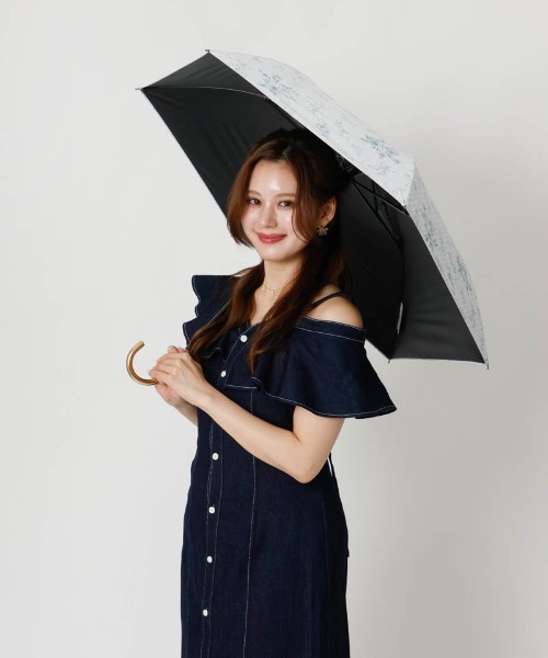 【ブランド説明】Ripple of Color.心弾ませ、日々を描こう。特別な日も、何気ない日も。いつも心から楽しみたい。そんな気持ちを、一瞬で思うままに。もっとたくさんの「好き」と出会えるはず。さあ、色とりどりの今を紡いでいこう。 【商品説明】 日差しからお肌を守る遮光率100%、UV遮蔽率100%、遮熱効果付きで熱中症対策にもおすすめの晴雨兼用トップフラット傘です。内側のブラックコーティングが照り返しの光を抑え、眩しさやお肌への負担を軽減します。軽量生地にはっ水、防水加工を施し、雨にも対応。天候に左右されず、毎日お使いいただけます。畳みやすい構造で、腕にかけることもできるので、日常使いや旅行など様々なシーンで大活躍。付属のゆったりサイズのドロストポーチは、傘をきっちり畳まず収納可能で、いつでもかわいく持ち運ぶことができます。駅や自宅の入り口付近でもスムーズです。デザインは、dazzlinのオリジナルフラワープリント。繊細に描き込まれたタッチが華やかで目を惹きます。ハンドルは持ちやすく上品な曲がり手元を採用。アンティークゴールドのパーツが高級感をプラスします。 ◆1級遮光 遮光率100%の生地を使用した日傘です。 ◆晴雨兼用 日傘としてはもちろん、突然の雨にも対応できます。 ◆トップフラット 簡単に開閉できてコンパクトな折り畳み傘です。骨の構造上、開いた時の面積が広いため、雨や日差しをしっかりガードします。 【サイズ】 親骨長さ:50cm 全長(収納時):約42cm 全長(使用時):約64cm 直径:約88cm 重量:約200g 【機能】 折りたたみ 手開き 6本骨 晴雨兼用傘 一級遮光 遮熱効果 UV はじきカバー 開閉が簡単 袋付き