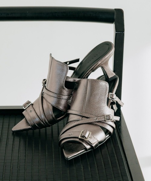 \エッジの効いたベルトデザインが映えるミュールサンダル/ 複数のベルトとハトメディテールが存在感を放つ一足。 シャープなシルエットが足元をすっきり見せ、スタイリングにモードな印象をプラスします。 ミュール仕様で取り入れやすく、パンツにもスカートにもマッチ。 履くだけでコーデを引き締めてくれるアイテムです。 〈注意事項〉 ・サンプルにて撮影をしておりますので、実際の商品とは素材や仕様・加工・サイズ等が若干異なる場合がございます。 ・モニター・環境等により実際の商品と色味が多少異なって表示される場合がございます。予めご了承をお願いいたします。 ・撮影環境により、光の当たり具合で色味が違って見える場合があります。あらかじめご了承下さい。 ▼気になるアイテムは《お気に入り登録》がおすすめです! 完売カラーの再入荷情報、セール情報、ラスト1点の通知を受け取ることができます! ▼《ブランドのお気に入り登録》で新商品や再入荷などのお得な情報をいち早くお知らせします。