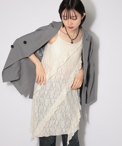 \レイヤードでこなれ感がアップするキャミワンピ!/ フリルとレースの組み合わせが、フェミニンな印象を引き立てるキャミソールワンピース。 肩紐は長さ調節が可能なのも嬉しいポイント。 インナー使いはもちろん、Tシャツの上に重ねたレイヤードスタイルもトレンド感を高めてくれます。 透け感のある素材を使用しており、レイヤードスタイルが楽しめます。 ボトムスはデニムとのレイヤードが一押しです。 〈注意事項〉 ・サンプルにて撮影をしておりますので、実際の商品とは素材や仕様・加工・サイズ等が若干異なる場合がございます。 ・モニター・環境等により実際の商品と色味が多少異なって表示される場合がございます。予めご了承をお願いいたします。 ・撮影環境により、光の当たり具合で色味が違って見える場合があります。あらかじめご了承下さい。 ▼気になるアイテムは《お気に入り登録》がおすすめです! 完売カラーの再入荷情報、セール情報、ラスト1点の通知を受け取ることができます! ▼《ブランドのお気に入り登録》で新商品や再入荷などのお得な情報をいち早くお知らせします。