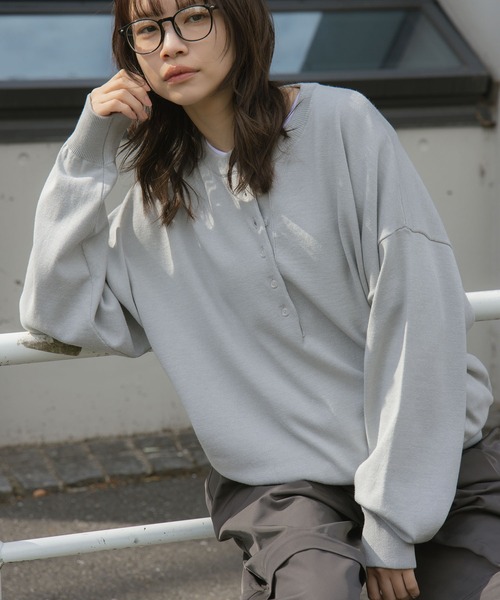 Loose henry neck knit / ルーズヘンリーネックニット 軽いタッチで春にぴったりなニットプルオーバー。 首元は上まで閉めても苦しくないほどよい開き具合で、 ボタンを開けてレイヤードを楽しんでも◎ ほどよくルーズなシルエットで、M,Lサイズ展開があり男女兼用デザインなので お揃いやプレゼントにもおすすめです♪ コットン混のニット素材で肌触りもなめらかです。 インナーを半袖にしてもチクチクしないので、ロングシーズン使えます。 ベーシックなデザインなので、タートルネックと合わせて秋冬にも◎ 定番のネイビーと、柔らかいグレーの2色展開。 ------------------------ 透け感/なし 光沢感/なし 伸縮性/あり 裏 地/なし 厚 み/ふつう ------------------------ ≪ concept ≫ あなたの日常をちょっとだけ特別に、じぶんの"好き"に素直になれる場所。 シンプルの中にもこだわり込めたカジュアルスタイルを提案します。 ▼商品のお気に入り登録 完売カラーの再入荷通知や、ラスト1点、セールの通知をお知らせ致します。 ▼ブランドお気に入り登録 新商品や再入荷など、いち早くブランドの情報を受け取ることができます。