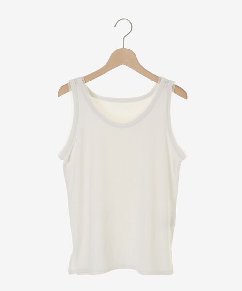 上品な光沢のラメ糸を使用したリブタンクトップです。 ●ポイント 一見シンプルなデザインですが、衿ぐりと袖口のチュール使いがディティールポイントです。 ●おすすめコーデ キャミワンピースを重ねたり、ベストやアウターのインナー使い等にもぴったり。 様々な着回しを楽しめる一枚をこの機会にぜひ。 ※取り扱いについては、商品についている洗濯表示にてご確認下さい。 ※照明の関係により、実際よりも色味が違って見える場合があります またパソコン・スマートフォンなどの環境により、若干製品と画像のカラーが異なる場合もございます。 ※商品の色味は、商品アップ画像をご参照ください。 【注意事項】 ・画像の商品はサンプルです。 ・サイズ表記はあくまで目安となります。 実際の商品と仕様、加工が若干異なる場合があります。