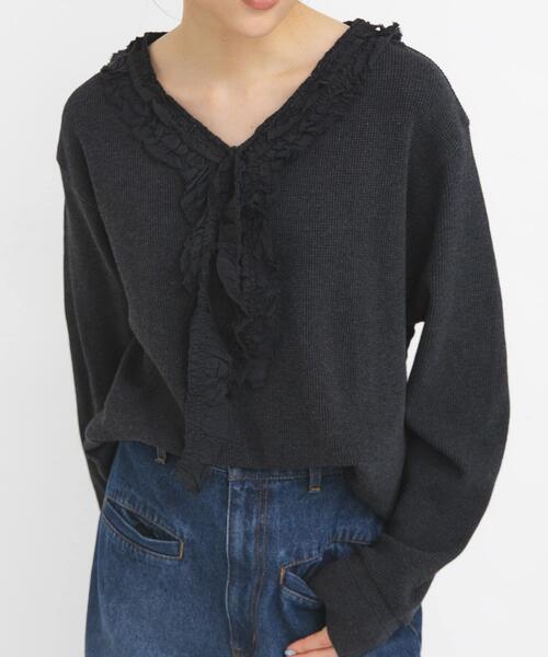 【ワッフル素材×レースのアンバランスがポイントのトップス】 カジュアルなワッフル素材に、アンバランスなレースを施したデザイントップス。身体のラインを拾い過ぎないサイジング、デコルテがすっきりと見えるVネック仕様もポイントです。インナーにプリントTEEを入れた着こなしもおすすめです。 【2026 Spring/Summer】【26SS】 ※商品画像は、光の当たり具合やパソコンなどの閲覧環境により、実際の色味と異なって見える場合がございます。予めご了承ください。 ※商品の色味の目安は、商品単体の画像をご参照ください。 ▼お気に入り登録のおすすめ▼ お気に入り登録された商品は、マイページにて現在の価格情報や在庫状況の確認が可能です。 お買い物リストの管理にぜひご利用ください。 素材感 透け感 : なし 伸縮性 : あり 裏地 : なし 光沢 : なし ポケット : なし One