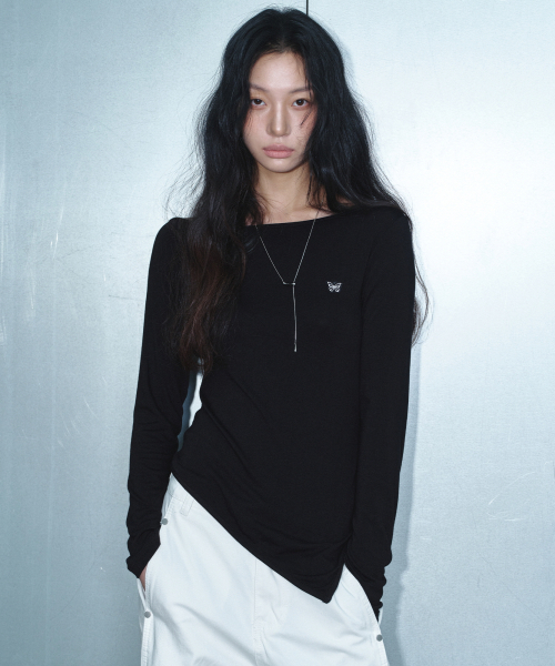 BUTTERFLY STRAP BOAT NECK TOP_BLACK