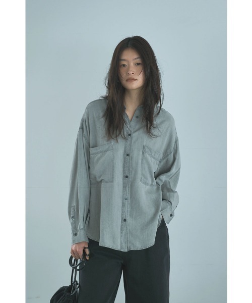 軽く、やわらかなテンセルデニムで作ったシャツ。 デニムの雰囲気はありながら、 4.5ozの薄手生地でとても軽く、落ち感のある素材。 身幅はゆったりめ。 体のラインを拾いすぎず、自然な抜け感で着られるシルエット。 胸ポケットやデニムライクなディテールで カジュアルな印象はありつつ、素材のなめらかさがラフすぎないバランスに整えてくれます。 シャツとしても軽い羽織りとしても使える1枚。 デニムのように合わせやすくいつものスタイリングに自然と馴染みます。 ピンクはほんのりやわらかいトーンで、デニムやブラックボトムと合わせると甘くなりすぎずニュアンスのある印象に。 [着用時期]3〜10月(約20℃以下) [透け感]なし [生地の厚み]薄手 [ストレッチ]なし [生地のやわらかさ]かなり柔らかい [生地の特徴]再生繊維(セルロース)100%のテンセルデニム。なめらかで落ち感のある軽い素材 [落ち感]あり [着用ジワ]袖や座った時のナチュラルなシワ [ポケット]胸ポケット有り [身長]全ての方に(身長によって着丈が変わります) ※感じ方には個人差がございますので気になる部分がありましたらお気軽にお問い合わせください