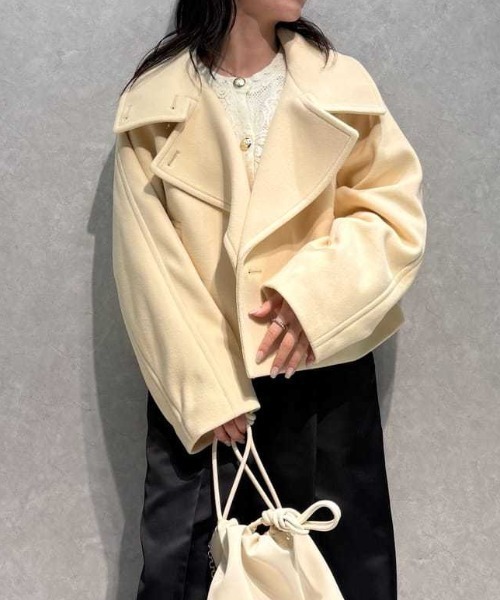 【モードなショートコートは2WAYの襟元で着回し効果◎】 【Design/Styling】 ボクシーなフォルムとコンパクトな丈感のバランスがモードに映えるショートコート。サッと羽織るだけで洒落るだけでなく、スタイルアップも叶えてくれます。 バックウエスト部分にはボタンとタブを付け、裾を絞るとコクーンのような構築的なフォルムも楽しめるようにしました。 大胆な襟デザインは、表情を変えられる2WAY仕様。 スタイリッシュなスタンドカラーと抜け感のあるオープンカラーを、スタイリングに合わせてチョイスできます。 ワイドスリーブも感度を高めるポイントに。 色展開は全3色。WHTとORGは、両面にニードルパンチという加工を施して柔らかな肌触り表現。 秋冬のスタイリングに軽やかに映えます。 MIXは、ブラック×ホワイトのツイード素材でトレンドライクに仕上げました。全色裏地付きです。 ※照明の関係により、実際よりも色味が違って見える場合があります。 またパソコン・スマートフォンなどの環境により、若干製品と画像のカラーが異なる場合もございます。予めご了承ください。 商品の色味は、商品単品画像をご参照下さい。 ※商品画像はサンプルのため、色味やサイズ等の仕様に変更がある場合がございますので、予めご了承ください。