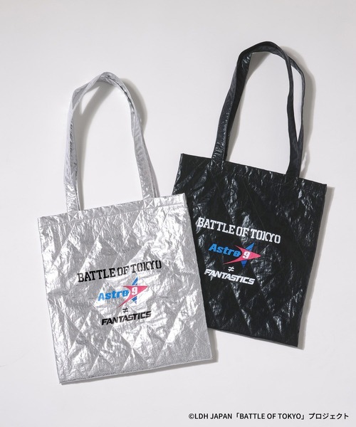 \大胆なロゴが目を惹くトートバッグ/ 薄中綿が入ったキルティングデザインのトートバッグ。 洒落感のあるダイヤ柄のキルティング加工で、型崩れしずらい仕様です。 A4サイズファイルや、雑誌が余裕を持って収納できるサイズ感。 シルバーは服のコーデに邪魔しにくく使い勝手抜群◎ 安定のブラックもシャイニーな光沢がおしゃれです。 ▼【BATTLE OF TOKYO】Astro9のアイテム一覧はこちら▼ ・【BATTLE OF TOKYO】Astro9 スラックス (アイテム番号:661690) ・【BATTLE OF TOKYO】Astro9 ショートスリーブパーカー (アイテム番号:661691) ・【BATTLE OF TOKYO】Astro9 Tシャツ (アイテム番号:661692) ・【BATTLE OF TOKYO】Astro9 チェックシャツ (アイテム番号:661693) ・【BATTLE OF TOKYO】Astro9 キャップ (アイテム番号:661694) ・【BATTLE OF TOKYO】Astro9 キーチャーム (アイテム番号:661696) ・【BATTLE OF TOKYO】Astro9 キャラチャーム (アイテム番号:661782) (c)LDH JAPAN「BATTLE OF TOKYO」プロジェクト 〈注意事項〉 ・サンプルにて撮影をしておりますので、実際の商品とは素材や仕様・加工・サイズ等が若干異なる場合がございます。 ・モニター・環境等により実際の商品と色味が多少異なって表示される場合がございます。予めご了承をお願いいたします。 ・撮影環境により、光の当たり具合で色味が違って見える場合があります。あらかじめご了承下さい。 ▼気になるアイテムは《お気に入り登録》がおすすめです! 完売カラーの再入荷情報、セール情報、ラスト1点の通知を受け取ることができます! ▼《ブランドのお気に入り登録》で新商品や再入荷などのお得な情報をいち早くお知らせします。