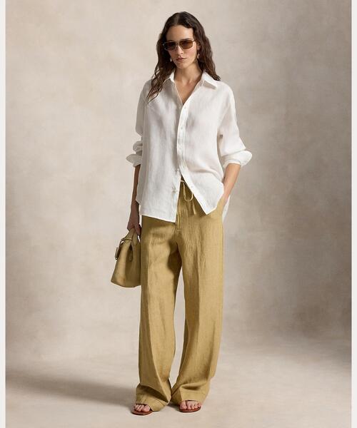 ゆったりとしたドレープとナチュラルなリネンの構造が調和したワイドレッグパンツ。ドローストリング付きのウエストとサイドシームポケットを取り入れたデザイン。 ・ワイドレッグのシルエット / くるぶし下丈。 ・ドローストリング付きの伸縮性のあるウエスト / ボタン留めジップフライ。 ・サイドシームポケット / 背面にパッチポケット2つ。 ・裏地なし。 ・モデル身長178cm、着用サイズS。 ※商品の色味は、光のあたり具合など諸条件により色感が多少異なって見える場合がございますので予めご了承下さい。 ポロ ラルフ ローレン