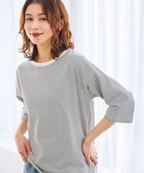 着回し抜群な便利アイテム! 一枚で様々な着こなしが楽しめますーーー 【素材】 ややしっかりめのフライス素材を使用。 伸縮性があり、柔らかい生地は着心地がよくデイリー使いにぴったりです。 【デザイン】 すっきりとしたコンパクトなシルエット。 体に程よくフィットする、ぴったりしすぎないサイズ感と安心感のある5分袖で快適にご着用いただけます。 日常に馴染むベーシックな4色展開です。 トップス カットソー ボーダー ーーー 【スタイリング】 キャミワンピースやベストのインナーに。 シンプルでベーシックなデザインなので着回し次第で上品にも甘めにもお楽しみいただけます。 もちろん、一枚でさらっと着ていただくのもおすすめです。