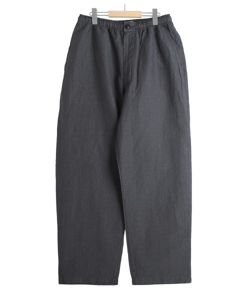 トロピカル生地が生む、しなやかなドレープとストレスフリーなイージーパンツ 【デザイン】 ・ウエストはゴム+ドローコードで着脱・サイズ調整が容易 ・フロントは上品なボタン開閉仕様 ・こちらのアイテムは 「26A-GL15863 / LINEN / WOOL TROPICAL SPORTS JACKET」 「26A-GL15864 / LINEN / WOOL TROPICAL CREW NECK VEST」と同生地になっており、セットアップでの着用も可能 【素材】 ・ウールの細番手トップ糸+リネン糸を交織したオリジナルトロピカル生地 ・ウールが持つ優れた吸湿性、リネンがもたらす光沢感・ドレープ性、ソフトな肌触りを備える 【シルエット・サイズ】 ・ワタリから裾までゆとりをもたせたワイドシルエット 【商品画像について】 ・閲覧環境や撮影環境による光の違いにより、掲載画像は実際の色と異なって見える場合がございます。(商品の色調は白背景の商品単体画像をご参照ください。)