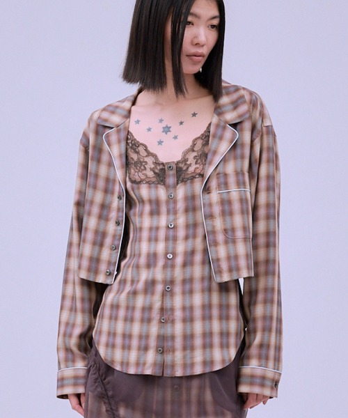 パイピングを効かせたオンブレーチェック柄のパジャマ風シャツと、優雅なレース切替を施した同素材のキャミソールのアンサンブル。セットアップでの着用はもちろん、それぞれが単体で強い個性を放つ、自由度の高いマルチウェイアイテムです。 シャツのインナーにレースを忍ばせる正統派な着こなしから、シャツの上にキャミソールを重ね、ウエストラインを緩やかにシェイプしながら身体のラインを美しく見せるモダンなシルエットまで、多様な表情を楽しめます。 ▼デザイン ショート丈のシャツに、胸元がレース素材になったキャミソールのセットアイテム。 キャミソールの肩紐はアジャスターにより調節可能です。 シャツ、キャミソール共にボタンにて、開閉可能です。 MATERIAL こちらのアイテムは、無地と柄物の異なる3つのファブリックで展開しております。 ※素材ごとに商品ページが異なります。 ▶Chambray(無地) シルクのような柔らかな光沢と、しなやかな落ち感が特徴のシャンブレー素材。 なめらかな質感が肌に心地よく馴染み、日常の装いに上品なリラックス感を添えてくれます。 対象品番 : 0586TM0597P ▶Stripe(ストライプ) 落ち着いた艶のある、パジャマライクな表情のストライプ柄。 シャープすぎない柔らかな色調がレースの甘さと調和し、洗練された大人のリラックススタイルを叶えます。 対象品番 : 0586TM0555P 0586TM1555P THINGS THAT MATTER (シングス ザット マター) まったく新しいアプローチで、コレクションを展開、感じることの大切さを伝えるブランド。 クリエイティブディレクターにはデザイナー武笠綾子を起用。 自分の内側に目を向け、自分を愛するきっかけになってほしい。 自分を愛することで一人ひとりの魂が満たされ、エネルギーが整い、正しく循環することでこの星のすべてを愛することに繋がる。 【 気になるアイテムはお気に入り登録をお勧めします!】 ♡マークをクリックし、再入荷やラスト1点の通知、セールなどのお知らせを受けることができ、お買い物が楽しめます。 ブランドのお気に入り登録もぜひお願いします!