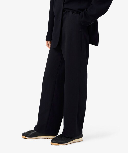 エレガンスとテクニカルな表情を兼ね備える鹿の子地スーツパンツ ・環境に配慮したリサイクルポリエステル仕立ての鹿の子素材 ・さらりとしたタッチに、ほどよいハリ感と落ち感を備えたドレープ感 ・フロントにプリーツ&ダーツを施した立体感あるデザイン ・左腰脇にボディと同色のワニロゴパッチ ・OVERSIZE FIT