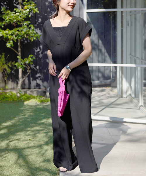 36.38サイズ/洗濯機使用可能/裏地なし/ポケットあり 【2026SS】 SLOBE IENA POINT 表情豊かなシュリンク素材と前後V開きのデザインの 大人サマーオールインワン! 【素材の特徴】 洗濯機使用可能で安心して着回ししやすく、 表面感のある生地でしわのケアが楽になる嬉しい素材。 さらっと落ち感のある生地で 暑い夏の味方になってくれるような快適な1着です。 【デザイン】 顔回りをすっきり見せてくれるようなVネック開きで 後ろの抜け感あるカッティングがポイント! 切り替え位置が高いので ワイドシルエットでもすっきり着こなせます。 二の腕をさりげなくカバーする絶妙な袖丈です。 【コーディネート】 インナーの色味やキャップやバックの小物使いで 雰囲気を変えて楽しめます。 軽く楽に取り扱いできるのでレジャーシーンにも◎。 ********************** 透け感:なし 裏地:なし 伸縮性:あり 光沢感:なし 生地の厚さ:薄手 ********************** 《スタッフ名:Sally》 年齢:30代後半/身長:162cm/体型:細身/普段サイズ:M/着用サイズ:38 サイズ感:足の甲にたまるくらいの着丈。袖回りは二の腕カバーできるようなデザインです!身幅はゆとりがあります。 素材感: 表面感があり、身体のラインを拾いにくい印象です。 着心地:さらっとしていて軽さのある生地なので暑い時期にも快適に過ごせそうです。 ********************** ※取り扱いについては、商品についている品質表示でご確認ください。 こちらの商品は、SLOBE IENAでの取り扱いになります。 直接店舗へお問い合わせの際はSLOBE IENA店舗へお願い致します。 ※照明の関係により、実際よりも色味が違って見える場合があります。 またパソコン・スマートフォンなどの環境により、若干製品と画像のカラーが異なる場合もございます。 予めご了承ください。 ※商品の色味は、商品アップ画像をご参照ください。 本体:洗濯機洗い(弱)