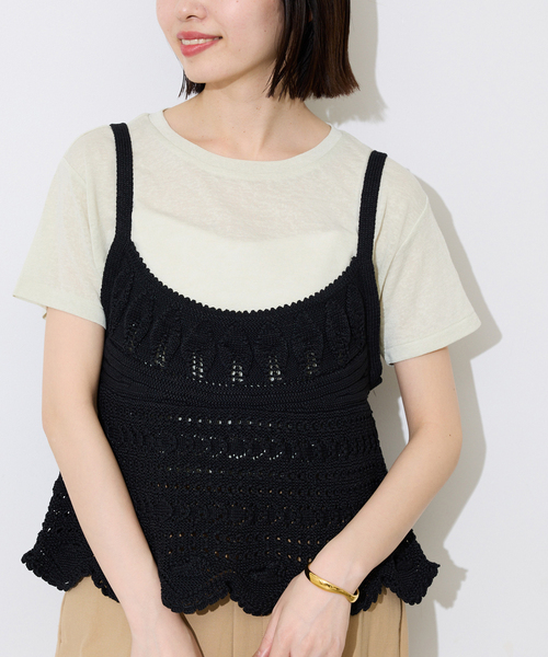手洗い可能 【2026SS】 SLOBE IENA POINT ・スタイリングのバリエーションが増えるような 重ね着が楽しくなるAラインニット。 【素材の特徴】 ヴィンテージライクな柄編みがさりげない個性を演出します。 【デザイン】 裾にフリルのようなディテールをあしらった、レース柄のAラインニット 【コーディネート】 Tシャツやタンクトップとのレイヤードに最適で、 いつものカジュアルスタイルに新鮮さを与えます。 程よく広がるAラインシルエットで体型カバーにも◎。 ********************** 透け感:あり 裏地:なし 伸縮性:あり 光沢感:なし 生地の厚さ:普通 ********************** 《スタッフ名:Sally》 年齢:30代後半/身長:162cm/体型:細身/普段サイズ:M/着用サイズ:フリー サイズ感:ウエストが隠れる着丈。身幅はゆとりがあります。 素材感: 柄編みのニットでチクチク感は気にならないです。 着心地:レイヤードしても窮屈感なく重さも気にせず着用できます。 ********************** ※取り扱いについては、商品についている品質表示でご確認ください。 こちらの商品は、SLOBE IENAでの取り扱いになります。 直接店舗へお問い合わせの際はSLOBE IENA店舗へお願い致します。 ※照明の関係により、実際よりも色味が違って見える場合があります。 またパソコン・スマートフォンなどの環境により、若干製品と画像のカラーが異なる場合もございます。 予めご了承ください。 ※商品の色味は、商品アップ画像をご参照ください。 本体:手洗い可能