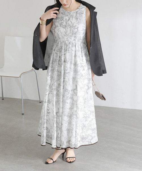 【2026SS】 La Totalite フルーツモチーフが目を惹く華やかなプリントワンピース。 やわらかなカラーリングが上品で、1枚で着映えする主役級アイテムです。 ウエストに入れたギャザーが自然なメリハリを生み、女性らしいフィット&フレアシルエットに。 ノースリーブデザインがすっきりとした抜け感を演出し、カーディガンやジャケットとも好相性です。 デイリーはもちろん、休日のお出かけやちょっとしたお呼ばれシーンにもおすすめの一枚。 ********************** 透け感:なし 裏地:あり 伸縮性:なし 光沢感:なし 生地の厚さ:普通 ********************** 【スタッフ着用コメント】 《スタッフ名:mizuki》 身長:160cm/体型:普通/普段サイズ:S/着用サイズ:38 サイズ感:上半身はコンパクトでフィット感あり。サイドのジップ付きなので着脱しやすいです。 素材感:皴になりにくいポリエステル素材。 着心地:記事をたっぷり使っていますが着てみると重たさはそこまで感じませんでした。自宅で洗えるのがうれしいポイント◎ ********************** ※取り扱いについては、商品についている品質表示でご確認ください。 ※照明の関係により、実際よりも色味が違って見える場合があります。 またパソコン・スマートフォンなどの環境により、若干製品と画像のカラーが異なる場合もございます。 ※商品の色味は、商品アップ画像をご参照ください。 着用モデル身長: 162cm 着用サイズ:38 本体:手洗い可能