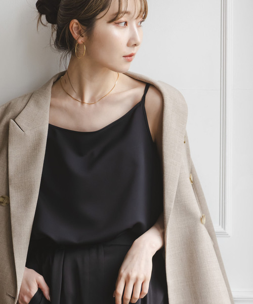 ◆1枚でもレイヤードでもオールシーズン使えて大人気のサテンキャミソールがWEB限定での追加に! ※商品番号25051240110030・25051240110140の追加商品です。 ※若干の仕様変更がある場合もございます。予めご了承ください。 ※レビュー、SNAPには現在お取り扱いのないカラーも含まれます。予めご了承ください。 ジャケットやシャツ・カーデなどのインナー使いからヘルシーな肌見せスタイルにも活躍してくれる、汎用性の高いサテン地のキャミソール。 サテン地ながらもツヤ感が上品で肌触りもピーチタッチな心地よさ。自肌に触れるアイテムだからこそ嬉しいイージーケア性も備わり、1枚持っていて損のないアイテムです。 バスト周りはややタイトにしたことで膨らみすぎないように配慮した点も嬉しいポイント。アームラインも見えすぎないように工夫し、1枚着としても成り立つような設計。 前後逆にしても着用ができるのでネック周りの印象に変化を出せるのも◎。 ※カラーによって組成が異なります。 ・ホワイト(010) 表地:ポリエステル100% 裏地:ポリエステル100% ・ブラック(001) 本体:ポリエステル100% ********************** 透け感:なし(ブラック)・ややあり(ホワイト) 裏地:なし(ブラック)・あり(ホワイト) 伸縮性:なし 光沢感:あり 生地の厚さ:普通 ********************** 【スタッフ着用コメント】 年齢20代前半/身長:155cm/体型:やや細身/普段サイズ: 34 /着用サイズ:フリー サイズ感: 身体が泳ぐサイジング。 ピタッとしないので、中にカップ付きインナーの着用が可能でした。 着丈はちょうどヒップが隠れる着丈でした。 素材感:ほつれにくいサテン素材。 着心地:スムースで軽い着心地です。 ジャケットやカーディガンのインナーにおすすめです。 ********************** ※取り扱いについては、商品についている品質表示でご確認ください。 ※こちらの商品は、NOBLEでの取り扱いになります。 直接店舗へお問い合わせの際はNOBLE店舗へお願い致します。 ※照明の関係により、実際よりも色味が違って見える場合があります。 またパソコン・スマートフォンなどの環境により、若干製品と画像のカラーが異なる場合もございます。 ※商品の色味は、商品アップ画像をご参照ください。 ブラック着用スタッフ身長:164cm 着用サイズ:フリー ホワイト着用スタッフ身長:155cm 着用サイズ:フリー モデルサイズ:身長:163cm 着用サイズ:フリー 本体:手洗い可能