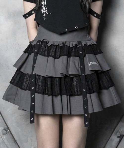 レースとフリルを重ねたボリューム感のあるミニスカート。 ベルトディテールがアクセント。 コンパクトなトップスとの相性が良く、バランスよく着用できます。 【LAZYSLAY】 気だるさや不安、曖昧な感情の中にある “自分らしさ”を、そのまま肯定する。 モノトーンを基調に、サブカルチャー、韓国ストリート、Y2Kの要素を掛け合わせ、強さと可愛さを併せ持つスタイルを提案します。 弱さや迷いを抱えたままでも、それでも自分を信じて歩くための服。 LAZYSLAYは、私が私でいるための戦闘服です。