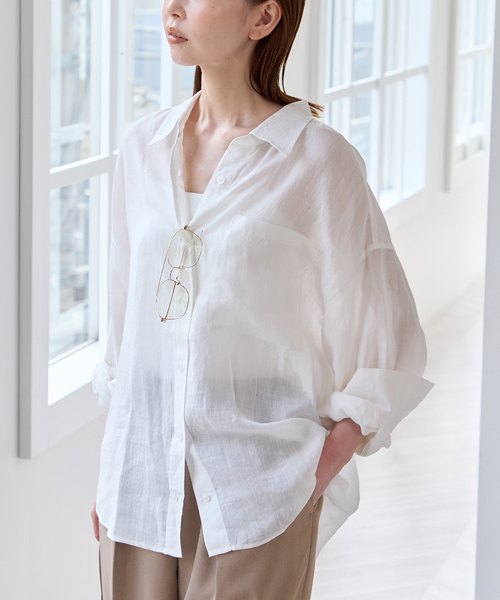 軽やかな風合いが魅力の、ラミー100%シャツ。 天然素材ならではのナチュラルな表情と、さらっとしたドライなタッチがこれからのシーズンにぴったりの一枚です。 通気性がよく肌離れのよい素材感で、暑い時期も快適な着心地。 シンプルなデザインで、デニムやスラックス、スカートまで幅広いスタイリングに馴染みます。 一枚でさらっと着るのはもちろん、軽い羽織りとしても活躍。 ロングシーズン着回しやすいアイテムです。 カラーはベーシックに使いやすいホワイトとブラウンに加え、 UBYらしいコーディネートの差し色になるピンクとグリーンをご用意しています。 ********************** 透け感:ややあり 裏地:なし 伸縮性:なし 光沢感:なし 生地の厚さ:薄手 ********************** ※こちらの商品はU by SPICK&SPAN店舗での取り扱いになります。 直接店舗へお問い合わせの際は、U by SPICK&SPAN店舗までお願い致します。 ※照明の関係により、実際よりも色味が違って見える場合があります。 またパソコン・スマートフォンなどの環境により、若干製品と画像のカラーが異なる場合もございます。 ※商品の色味は、商品アップ画像をご参照ください。 本体:手洗い可能