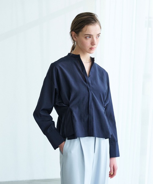 上品な程よい艶と立体美が際立つ撥水ブラウス 軽やかで上品な表情が魅力の、国内生産の撥水ブライトローン素材を使用したシリーズ。 繊細に織り上げた薄手のローン素材は、やや光沢のある上品な質感が特徴。 ポリエステル100%ながら軽くしなやかで、程よいハリ感があり、美しいシルエットを保ちます。 さらに撥水加工を施している為、急な天候の変化にも対応でき、デイリーに取り入れやすい機能性もプラス。 軽さ、機能性、上品な光沢感を兼ね備えた、国内素材ならではの上質クオリティです。 程よいハリ感が生み出す立体フォルムが魅力で、 ウエスト位置を高く見せるタックペプラム仕様により、自然に女性らしいメリハリを叶えてくれます。 撥水・UV機能も備えているため、天気の読めない日や紫外線対策など幅広く活躍します。 【機能】マシンウォッシャブル・接触冷感・撥水・UVカット(紫外線遮蔽率 90%以上) -------------------------- 透け感:ややあり 裏地:なし 伸縮性: なし 光沢感: あり 生地の厚さ:薄手 -------------------------- 【モデルスペック】 身長:175㎝、着用サイズ:F ※照明などの関係により、実際と色味が違って見える場合がございます。予めご了承ください。 商品の色味は、商品単品画像をご参照下さい。
