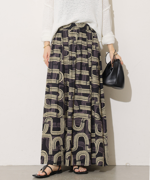 【2026SS】 JOURNAL STANDARD relume ◆エキゾチックな柄が大人っぽい印象のプリントスカート 表面にほんのりシワ感のある素材で 涼しげな印象を演出。 ウエストのタックギャザーで 程よいボリュームを出しながらも 落ち感もある素材で すっきりと見せてくれる シルエットに仕上げました。 裾に切り替えを入れて 柄の入り方に変化をつけたのが こだわりポイントです。 軽やかな生地感で裏地もないので 夏にかけても涼しく着られる 大活躍間違いなしのアイテムです。 同シリーズで下記もございます。 モダンアフリカンプリントパンツ(品番:26030462729020) モダンアフリカンプリントワンピース(品番:26040462703020) ※取り扱いについては、商品についている品質表示でご確認ください。 ********************** 透け感:なし 裏地:なし 伸縮性:なし 光沢感:なし 生地の厚さ:普通 ********************** 【スタッフ着用コメント】 《スタッフT》 身長:161cm/体型:普通/普段サイズ:M/着用サイズ:FREE サイズ感:私の身長だと足首がちょうど隠れる長さです。 素材感:表面に表情のある素材。レーヨン混で落ち感があります。 着心地:モダンな印象で大人っぽく着られる総柄スカートだなと思いました。 ********************** ※照明の関係により、実際よりも色味が違って見える場合があります。 またパソコン・スマートフォンなどの環境により、若干製品と画像のカラーが異なる場合もございます。 ※商品の色味は、商品アップ画像をご参照ください。 本体:手洗い可能
